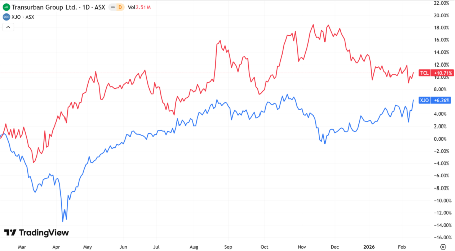 (Source: TradingView) One-Year Performance Profile of SGP on a DTF compared to ASX200 (XJO).