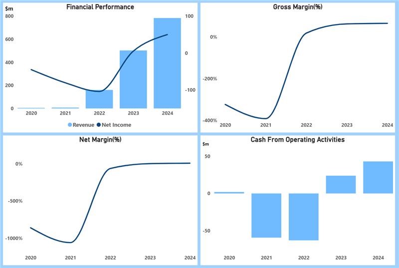 - Revenue top line was subdued from $0.5 million in 2021 to $0.46 million 2024 reflecting the pre‑commercial phase and customer qualification period. FY2025 inflected to $3.8 million as powder sales and PM‑HIP orders scaled, aided by commissioning of a second EIGA atomizer and initial commercialization progress.