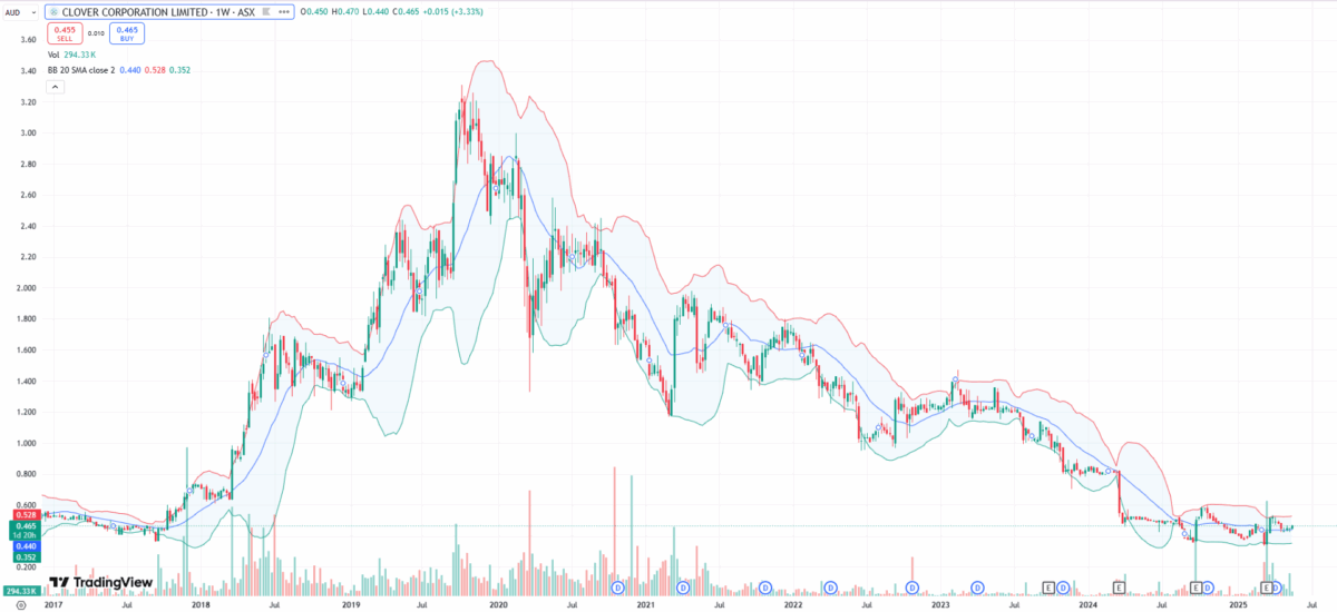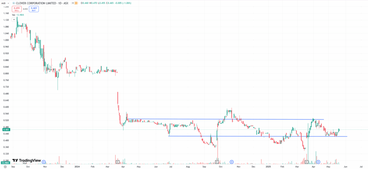 (Graphic Source: TradingView) Clover Corporation Limited (ASX: CLV) Daily Time-Frame (DTF) Chart.